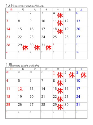 2023年12/31(日)〜2023年1/3(水)はお休みいたします。
